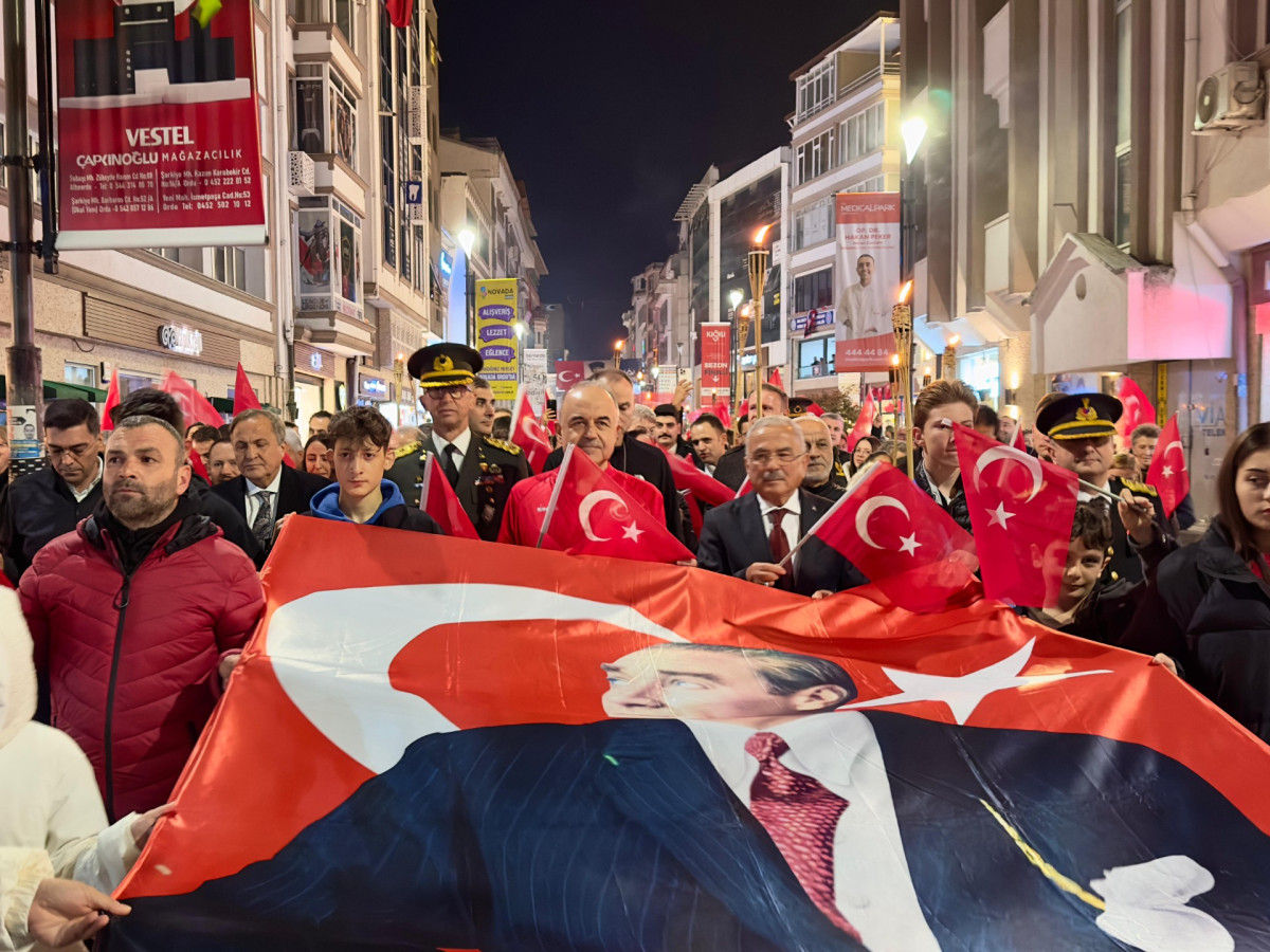 Türk Bayrakları, Atatürk posteri ve meşaleler eşliğinde oluşturulan yürüyüş korteji, Ordu Büyükşehir Belediyesi Kent Orkestrasının çaldığı marşlar eşliğinde Köprübaşı Ceren Özdemir Meydanından itibaren yürüyüşe başladı.