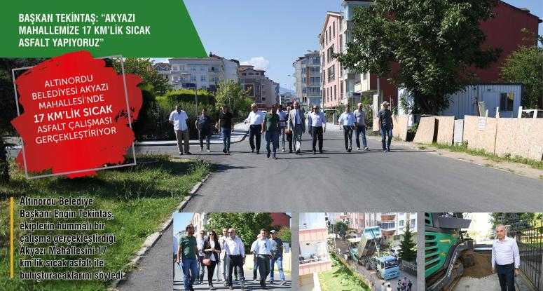 Altınordu Belediye Başkanı Engin Tekintaş, ekiplerin hummalı bir çalışma gerçekleştirdiği Akyazı Mahallesini 17 km’lik sıcak asfalt ile buluşturacaklarını söyledi.