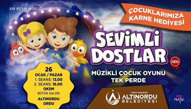 Altınordu Belediyesi çocuklara karne hediyesi olarak planladığı ‘Sevimli Dostlar’ adlı tiyatro oyununu 26 Ocak Pazar günü 13.00 ve 16.00 saatlerinde iki seans halinde çocuklarla buluşturuyor.