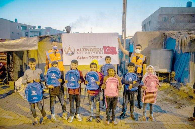 Altınordu Belediyesi Suriye’de 10 yıldır yaşanan iç savaştan en çok etkilenen yetim çocuklar ve diğer ihtiyaç sahipleri için yaptıklarıyla dertlerine derman olmaya çalışıyor. Altınordu Belediyesinin bot, mont okul çantası ve kırtasiye seti ile çeşitli ihtiyaç malzemelerinden oluşan yardımları, AFAD ve Türk Kızılay’ı iş birliği ile Suriye Türkmendağı bölgesinde ve Hatay’ın Reyhanlı ilçesinde bulunan mülteci kampına ulaştırıldı.