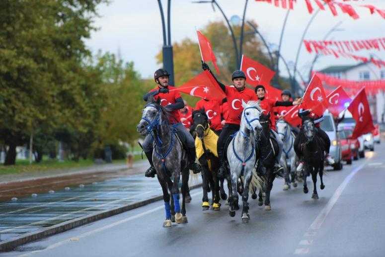 Atlı spor kulübü üyelerinin katılımıyla geçiş törenleri düzenledi. Saat 14’de Durugöl mahallesi soya Caddesi’nden başlayan programda şanlı tarihin ve büyük zaferlerin emektarları ihtişamlarıyla kadim kültürümüzün ayak izlerini taşıyan atlı kortej şehri turladı.