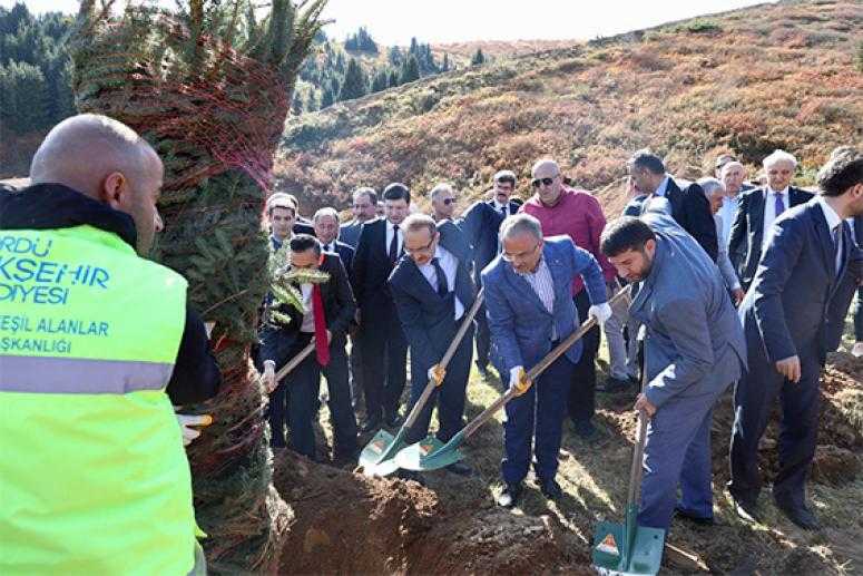 Çambaşı Yaylası’nda düzenlenen törenle 800 ladinin toprakla buluşturulduğunu ifade eden Ordu Büyükşehir Belediye Başkanı Dr. Mehmet Hilmi Güler, ağaç sayısını gelecek yıl 2 bine çıkarmayı hedeflediklerini söyledi.