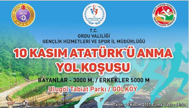 10 Kasım Atatürk' ü Anma Yol Koşusu cuma saat 14:30' da Ulugöl' de bayanlarda 3000 m, erkeklerde 5000 m olarak koşulacaktır. HABER MERKEZİ