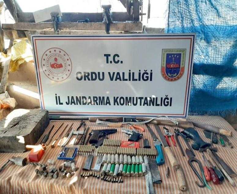 Ordu İl Jandarma Komutanlığınca yapılan çalışmalar neticesinde, Korgan İlçesinde yapılan operasyonda; 1 şüpheli şahsa ait ev ve eklentilerinde yapılan aramalarda, 1 adet ruhsatsız tabanca, 1 adet av tüfeği, 1 adet faturasız kuru sıkı tabanca, 243 adet tabanca fişeği, 44 adet kuru sıkı tabanca fişeği, 15 adet av tüfeği fişeği, 17 adet kartuş tapası, 20 gr saçma, 1 adet barut doldurma aparatı, 2 adet mengene, 1 adet matkap, 3 adet metal keski aleti ile muhtelif demir atölye malzemeleri ele geçirildi.