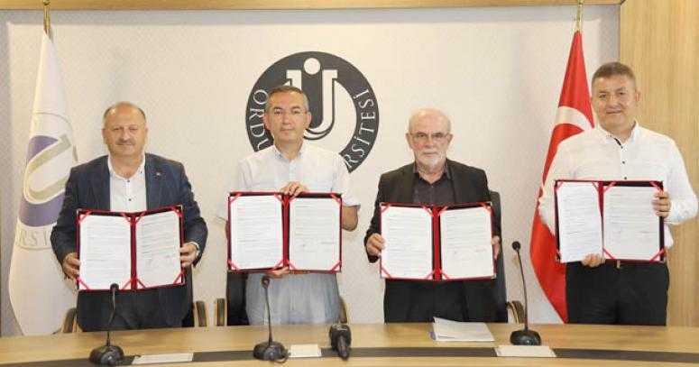 Ordu Üniversitesi  ile Ünye Kültür Eğitim ve Dayanışma Derneği (ÜNKED) arasında Ünye İktisadi ve İdari Bilimler Fakültesinin yapım işine yönelik protokol imzalandı. İmzalanan protokol, Üniversitemize tahsis edilen arazi üzerine ÜNKED tarafından Ünye İktisadi ve İdari Bilimler Fakültesi binasının saha tanziminin yaptırılması ve anahtar teslimi olarak Üniversitemize bedelsiz devredilmesini kapsıyor. Bununla birlikte yapılan proje ile 15 bin metrekare kapalı alana sahip olacak Fakülte binasında en az 11 derslik, 9 amfi, 2 bilgisayar laboratuvarı, 18 idari oda, 3 seminer salonu, 2 yemekhane, 1 kantin ve 1 konferans salonu bulunacak. “Tüm ihtiyaçları karşılayacak modern bir bina olacak” Rektör Prof. Dr. Ali Akdoğan protokol sonrası gerçekleştirdiği konuşmada “Tarım ve Orman Bakanlığımız tarafından Üniversitemize tahsis edilen Ünye’deki 165 dönümlük alan üzerine Ünye İktisadi ve İdari Bilimler Fakültesinin tüm ihtiyaçlarına cevap verecek modern bir binanın yapımı için Ünye Kültür Eğitim ve Dayanışma Derneği ile bir protokol imzaladık. İlerleyen günlerde Ordu’muzun yetiştirdiği, kıymetli büyüğümüz Sayın Prof. Dr. Numan Kurtulmuş’un katılımıyla bir temel atma törenimiz olacak. 15 bin metrekare kapalı alana sahip olacak Fakülte binamızda öğretim elemanları ofisinden derslik ve amfilere, idari odalardan yemekhane ve seminer salonlarına kadar tüm mekanlar yer alacak. Üniversitemizin bütün eğitim birimleriyle Ordu’muza faydalı olması adına tüm gayretimizle çalışıyoruz. Bu düşüncelerle başta Ünye Belediye Başkanı Hüseyin Tavlı’ya, Ünye Kültür Eğitim ve Dayanışma Derneği Başkanı Reşit Erol’a ve emeği geçen herkese teşekkür ediyor, imzaladığımız bu protokolün hayırlı olmasını diliyorum.” diye konuştu. “Fakültesi binasını en kısa zamanda  yükselteceğiz” Ünye Kültür Eğitim ve Dayanışma Derneği Başkanı Reşit Erol, “Uzun mücadeleler sonrasında tahsisini gerçekleştirdiğimiz Üniversite kampüs alanıyla ilgili olarak son aşamaya geldik. Yarından itibaren hafriyatımıza başlayıp Ünye İktisadi ve İdari Bilimler Fakültesi binasını en kısa zamanda yükselteceğiz. Dernek olarak bu işi üstlendik fakat bu işi Ünye olarak sahiplendik. Bununla ilgili olarak bize destek veren Sayın Rektörümüze, Ünye Belediye Başkanımıza ve emeği geçenlere teşekkür ediyoruz.” dedi. “Üzerimize düşen görevi yerine getireceğiz” Ünye Belediye Başkanı Hüseyin Tavlı, “Ünye için uzun süredir uğraşılan ve aynı zamanda neticesinin başlangıcına geldiğimize yürekten inandığımız bir ana şahitlik etmenin mutluluğunu yaşıyoruz. Yaklaşık 16-17 yıldır Ünye’de Ordu Üniversitesinin ikinci bir yerleşkesinin oluşturulması noktasındaki mücadelelere ÜNKED Başkanımızın yanında bizzat şahit olduğum için gelinen noktanın ne kadar kıymetli olduğunu da bilen kardeşlerinizden birisiyim. Bizler yerel yönetim olarak bir yerleşkenin kazandırılması noktasında üzerimize düşen bir fakülte binasının temelini çok kısa zamanda inşallah Sayın Genel Başkan Vekilimiz Prof. Dr. Numan Kurtulmuş’un da katılımıyla birlikte atacağız. Buradan başta Sayın Rektörümüz olmak üzere emeği geçen herkese teşekkür ediyorum.” şeklinde konuştu.