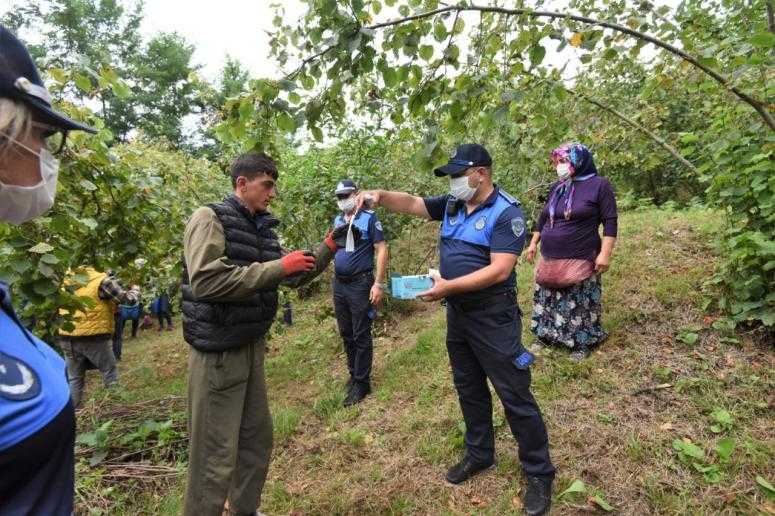 Altınordu Belediye Başkanı Aşkın TÖREN’in talimatlarıyla Altınordu Belediye Başkan Yardımcısı Cihat Demiralp koordinesinde gerçekleştirilen denetimlerde zabıta ekiplerince fındık hasadı yapan işçilere maske dağıtımı yapılarak ateşleri ölçüldü. Ekipler ayrıca işçilere sosyal mesafe uyarısın da bulunurken hijyen kurallarına da riayet edilmesini istedi.