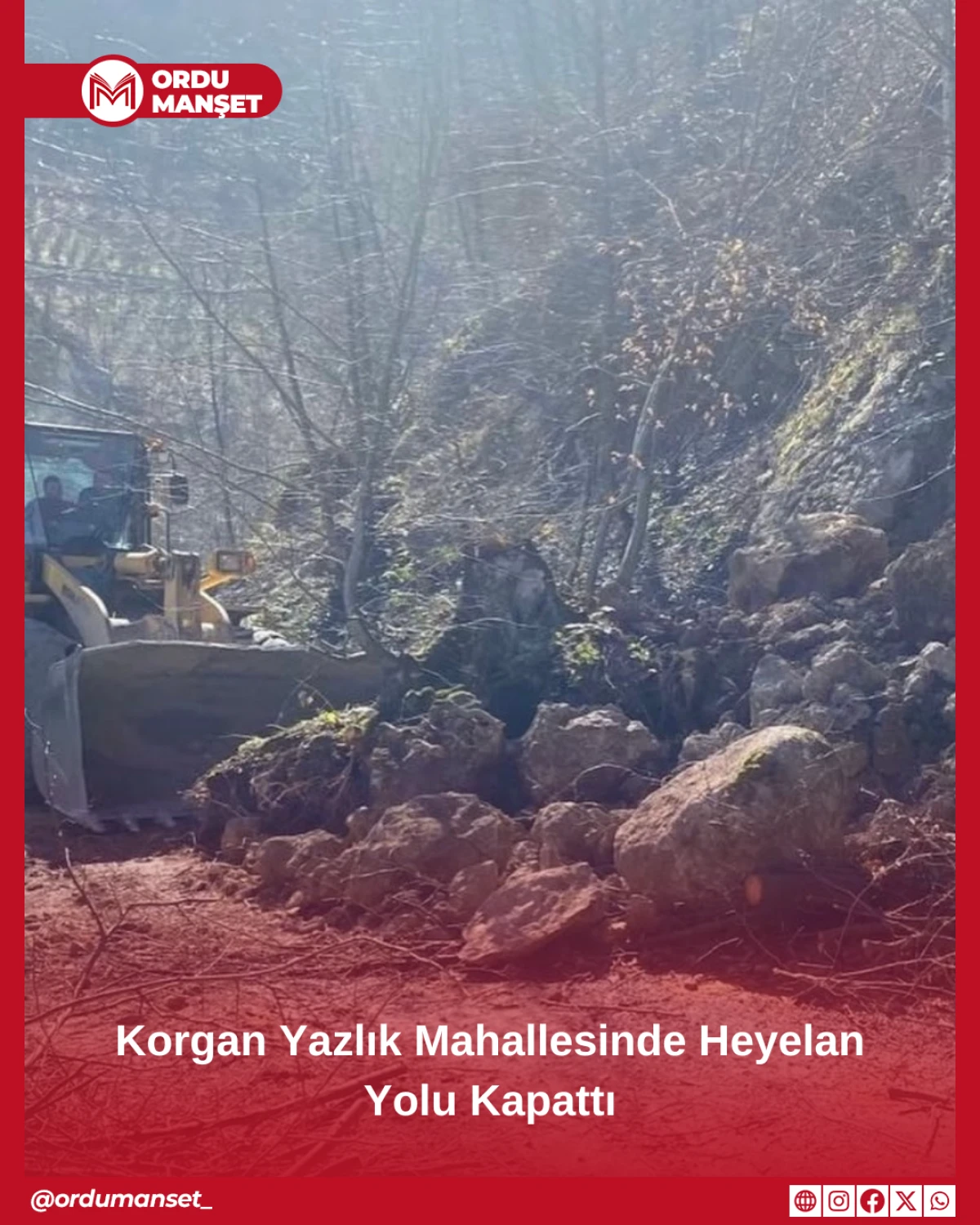 Ordu'nun Korgan ilçesi Yazlık Mahallesi'nde meydana gelen toprak kayması sonrası kapanan yol, Korgan Belediyesi ekiplerinin müdahalesiyle yeniden ulaşıma açıldı. Çalışmalar sürüyor.