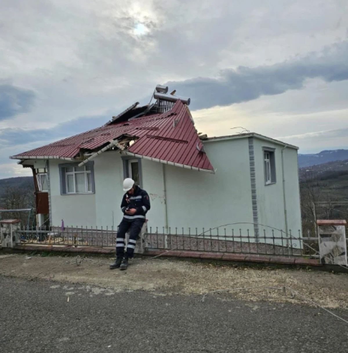 Ordu’nun Kumru ilçesinde sabah saatlerinde etkili olan aşırı rüzgar bir evin çatısını yerinden söktü. Olay paniğe yol açarken can kaybı yaşanmadı, evde maddi hasar oluştu.