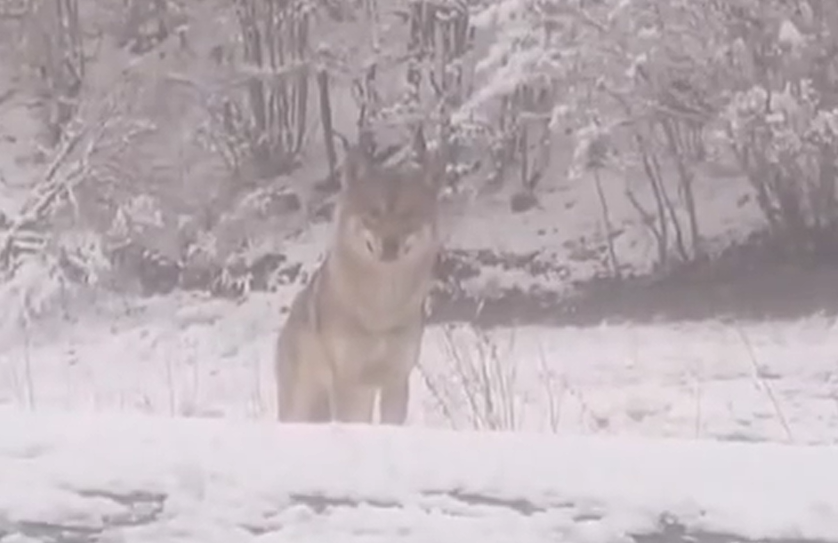 Ordu'nun Mesudiye ilçesi, Topçam Mahallesi'nde sakinler, yol kenarında beliren kurt tarafından şaşırtıldı.