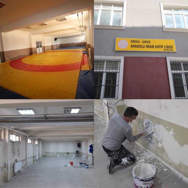 Gençlik ve Spor Bakanlığı desteği ile Gençlik ve Spor İl Müdürlüğü atölye ekibi tarafından, Ünye ilçesinde bulunan 6 devlet okuluna 7 adet Okul Mahalle Antrenman Spor Salonu yapıldı.