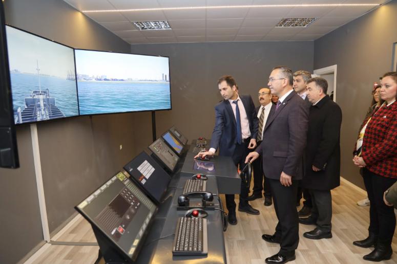 Rektör Prof. Dr. Ali Akdoğan Ordu Üniversitesi Fatsa Deniz Bilimleri Fakültesi’ne İMEAK Deniz Ticaret Odası tarafından hibe edilen simülatör eğitim merkezinde incelemelerde bulundu.