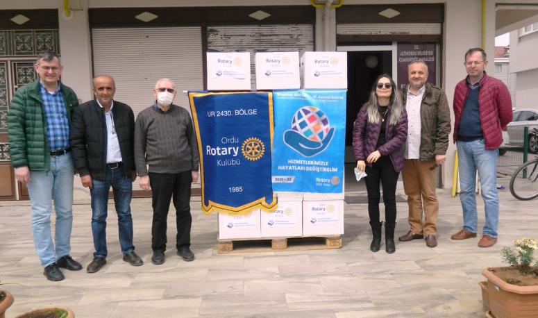 Ordu Rotary Kulübü, Altınordu Cumhuriyet Mahallesi Muhtarı Uğur Özcan’ın aracılığı ile belirlediği ihtiyaç sahibi ailelere gıda yardımında bulundu. Ordu Rotary Kulübü Yönetim Kurulu üyeleri 22 Nisan 2022 tarihinde Cumhuriyet Mahallesi Muhtarı Uğur Özcan’ın ziyaret ederek ailelere verilecek gıda paketlerini muhtarlığa teslim ettiler