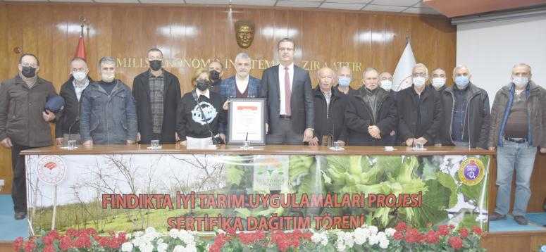 Ordu İl Tarım ve Orman Müdürlüğü ile Altınordu Ziraat Odası işbirliğinde yürütülen "Fındıkta İyi Tarım Uygulamaları Projesi" kapsamında sertifika töreni düzenlendi.