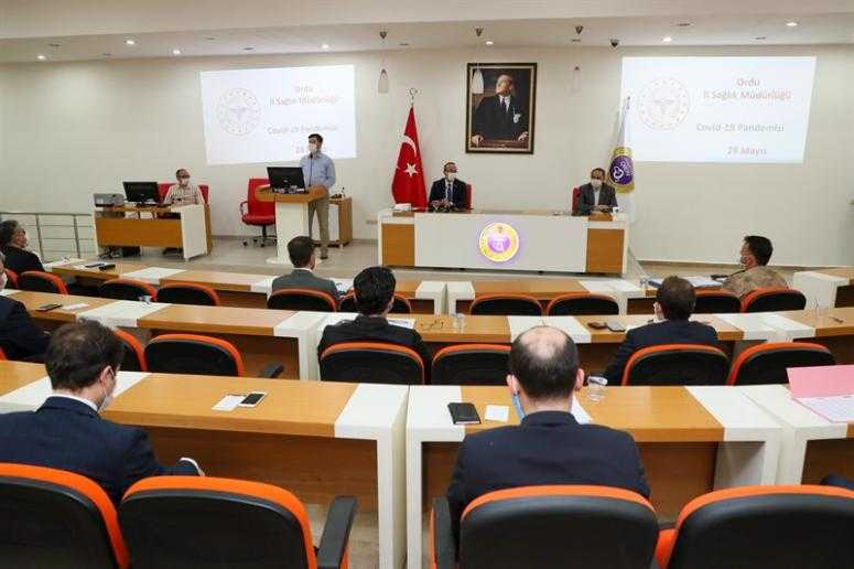 Yurt içinden ve yurt dışından Ordu’ya gelen şahısların, hijyen, temas, sosyal mesafe ve maske kullanımı tedbirlerine riayet etmemeleri sonucu Covid-19 vakalarında artış meydana gelmesi üzerine Vali Seddar Yavuz başkanlığında toplantı gerçekleştirildi.