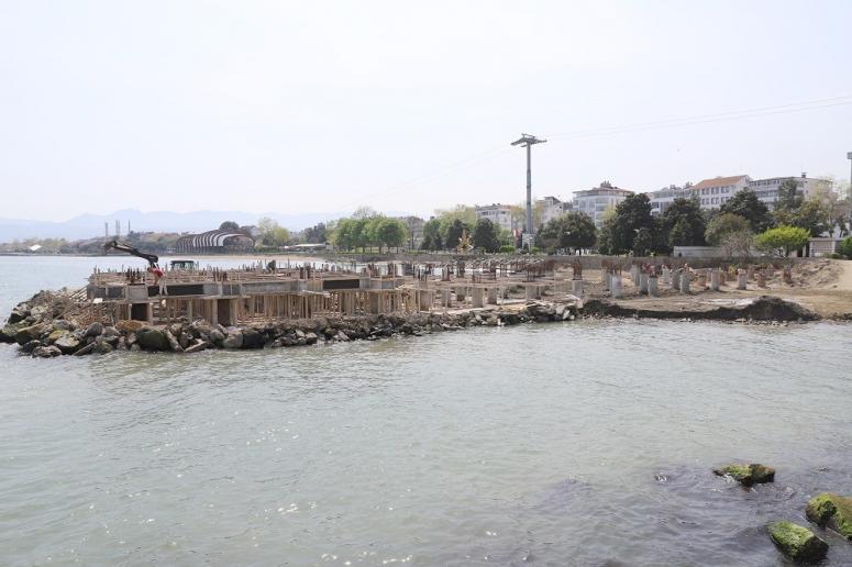Beton ayakları korozyona uğradığı için can ve mal güvenliğini tehlikeye atan Altınordu sahilindeki tarihi büyük iskeleyi yenileme çalışmalarını sürdüren Büyükşehir Belediyesi işin yüzde 75’ini tamamladı. İskele döşemesi kaba inşaat imalatları devam eden proje kapsamında 77 metre uzunluğunda 1.460 metrekare iskele alanı oluşturulacak.
