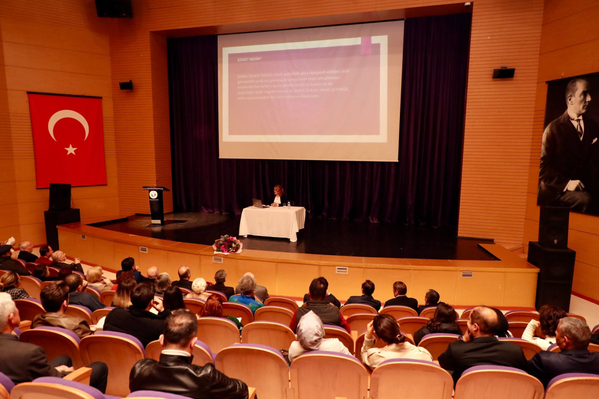 Vali Muammer Erol, Eğitim Danışmanı Ülkü Gürsoy tarafından verilen “Şiddetsizlik, Şiddetsiz Bir Dünya Mümkün mü?” konulu konferansa katıldı.