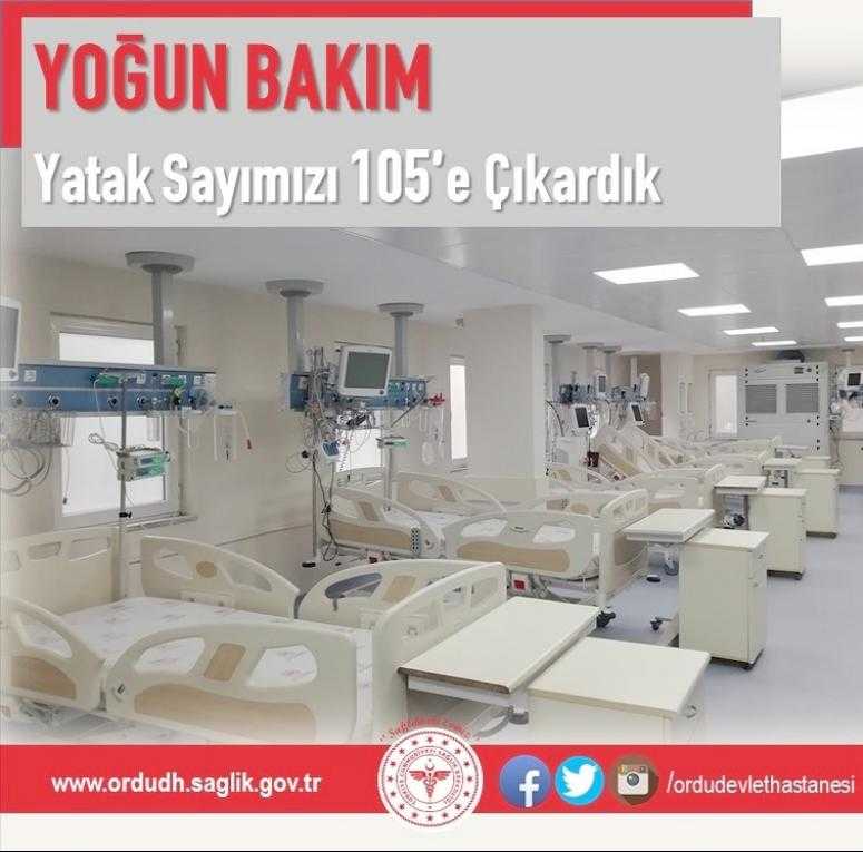 Ordu Devlet Hastanesinde yeni faaliyete geçirilen 1.Basamak Genel Yoğun Bakım 3 Ünitesi ile yoğun bakım yatak sayısı 105'e çıktı.